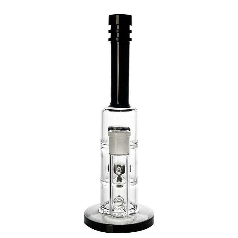 Explore this double chamber glass bong, designed for users seeking a high-quality smoking experience. Standing at 10.24 inches tall, this bong features a modern and minimalist design while offering exceptional functionality, making it an ideal choice as a dab rig. Its double chamber design enhances filtration, ensuring every hit is fresh and smooth, suitable for various occasions.What sets this bong apart is its efficient filtration system, which effectively removes impurities and heat, resulting in purer smoke with every inhale. Whether enjoying dry herbs or concentrates, this bong delivers outstanding performance, ensuring an unparalleled smoking experience.Made from high-quality transparent glass, this bong is not only durable but also safe, allowing users to easily observe the flow of smoke. The black top and base design adds a modern touch, making it a highlight in any setting, whether enjoyed alone or shared with friends.