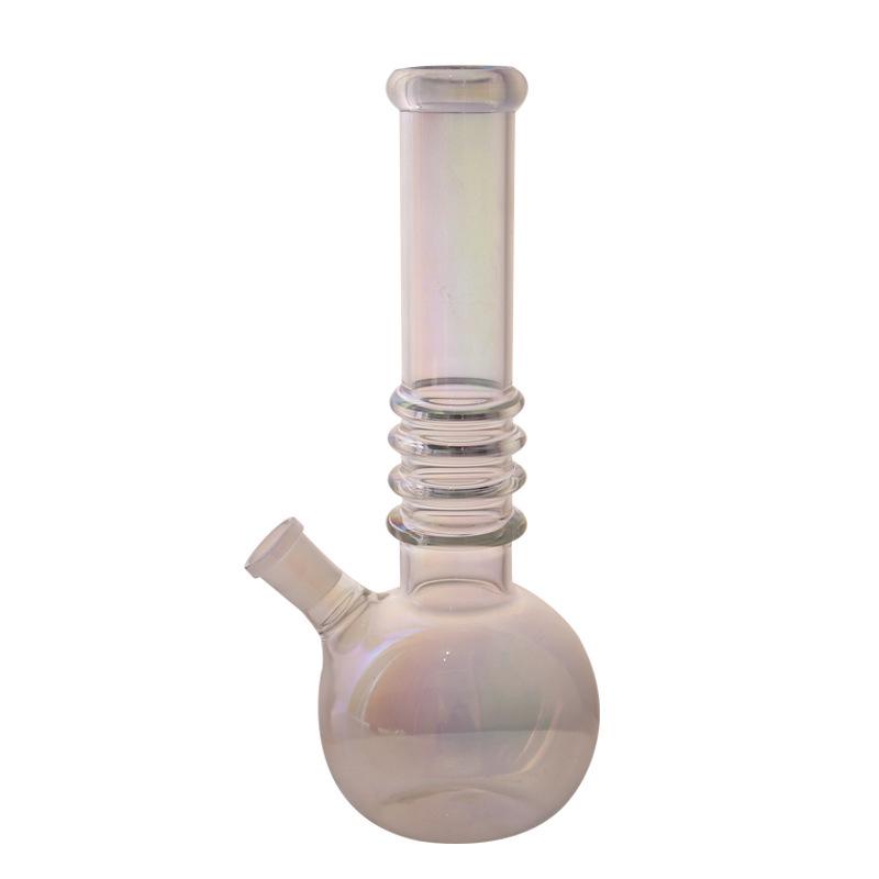 Introducing the stunning mini beaker bong, standing at 10.24 inches tall, this piece combines functionality with an eye-catching iridescent finish. Designed for both style and performance, this bong is perfect for those who appreciate the art of smoking. The beaker shape not only enhances stability but also allows for greater water capacity, ensuring a smoother smoking experience.The iridescent color adds a unique aesthetic appeal, making this bong a standout piece in any collection. Its sleek design is complemented by the ribbed neck, which not only offers a comfortable grip but also enhances the cooling process of the smoke, resulting in a more enjoyable hit.