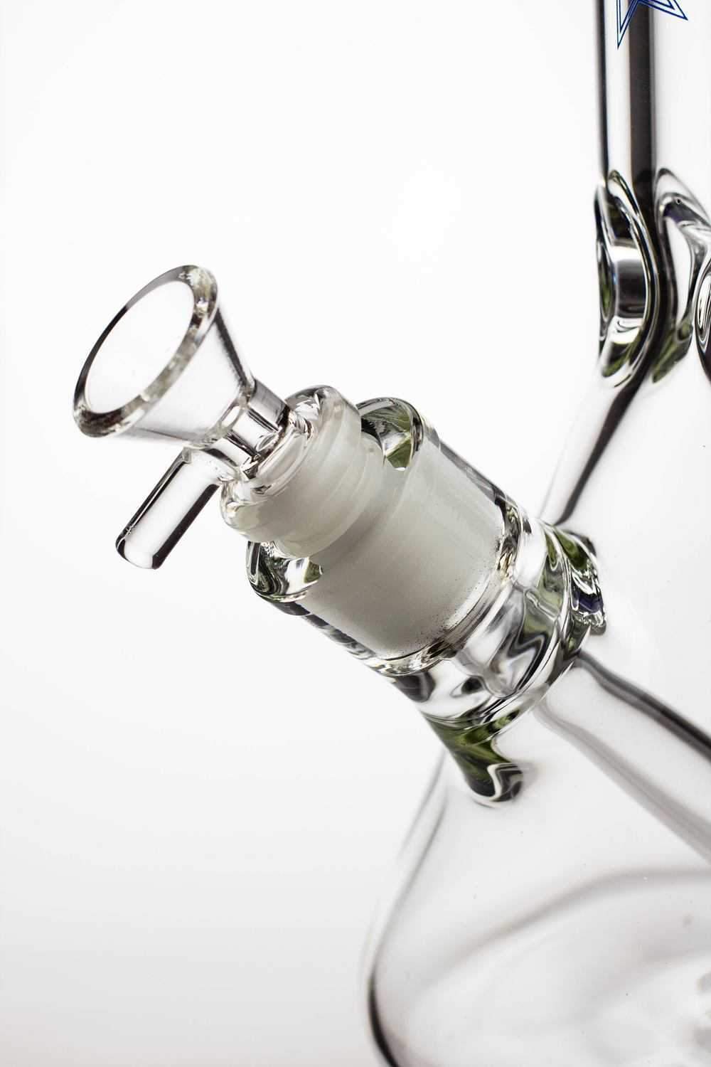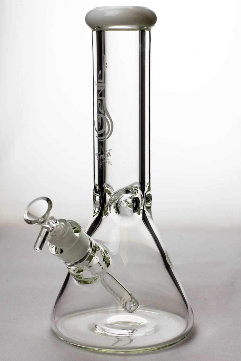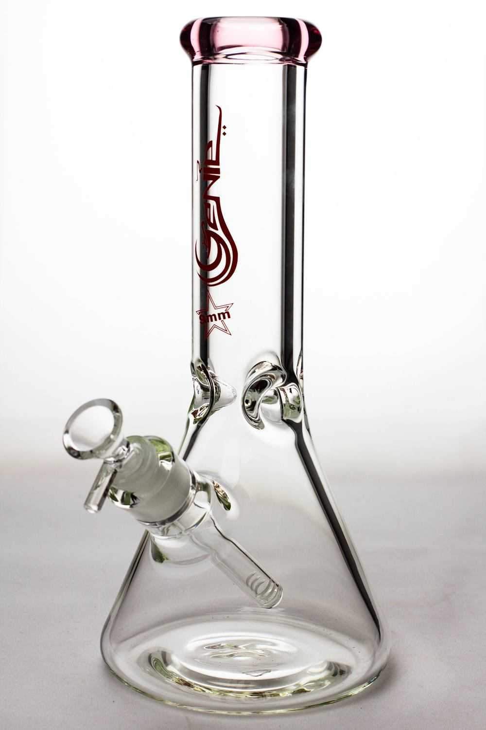 This is a simple clear color classic style beauty bong by Genie Glass. Producing 9 mm thickness tubing is very costly to produce but it is well worth due to its gorgeous looks. It comes with an 14/18 mm slitted diffuser downstem and a 14 mm thick bowl. From there smoke is diffused and cooled in the main chamber. A long 9 mm thick tube keeps water from bubbling up towards the thick, comfortable mouthpiece, and ice notches will hold a few cubes for even cooler smoke. This water pipe is made of quality borosilicate glass.