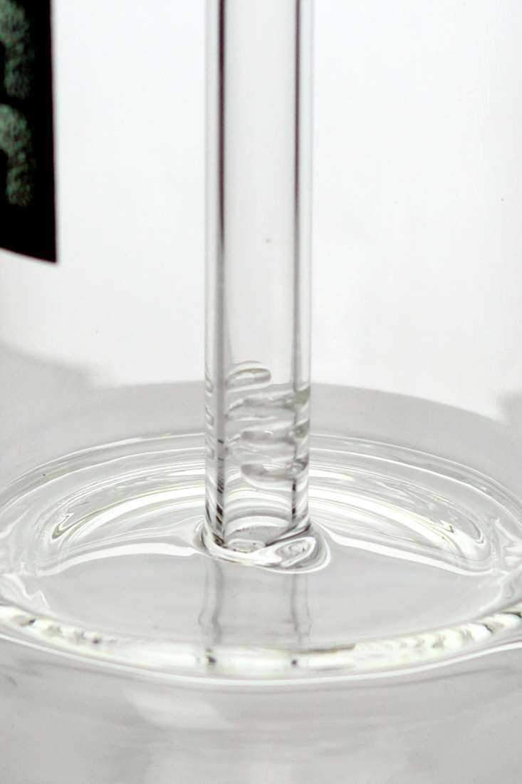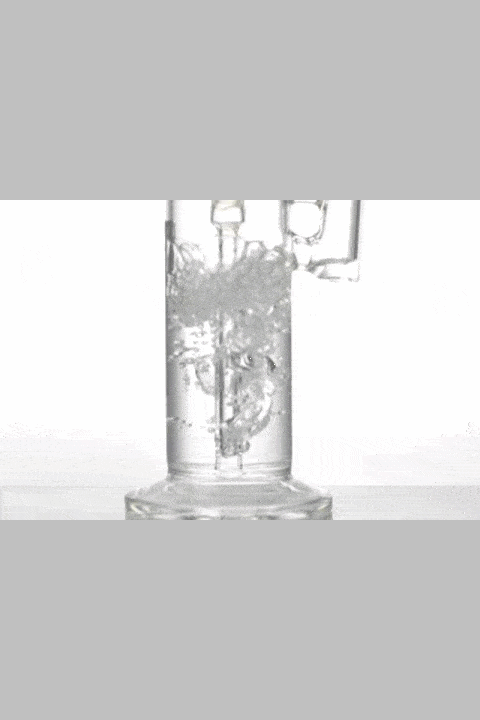 This clear glass bubbler features a powerful, smoke-cooling beanpole stem diffuser in chamber. The slender, curved tube ends in a comfortable mouthpiece, and its 18 mm joint comes equipped with an 18 mm bowl with marble dot.