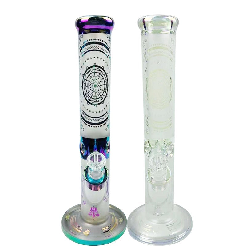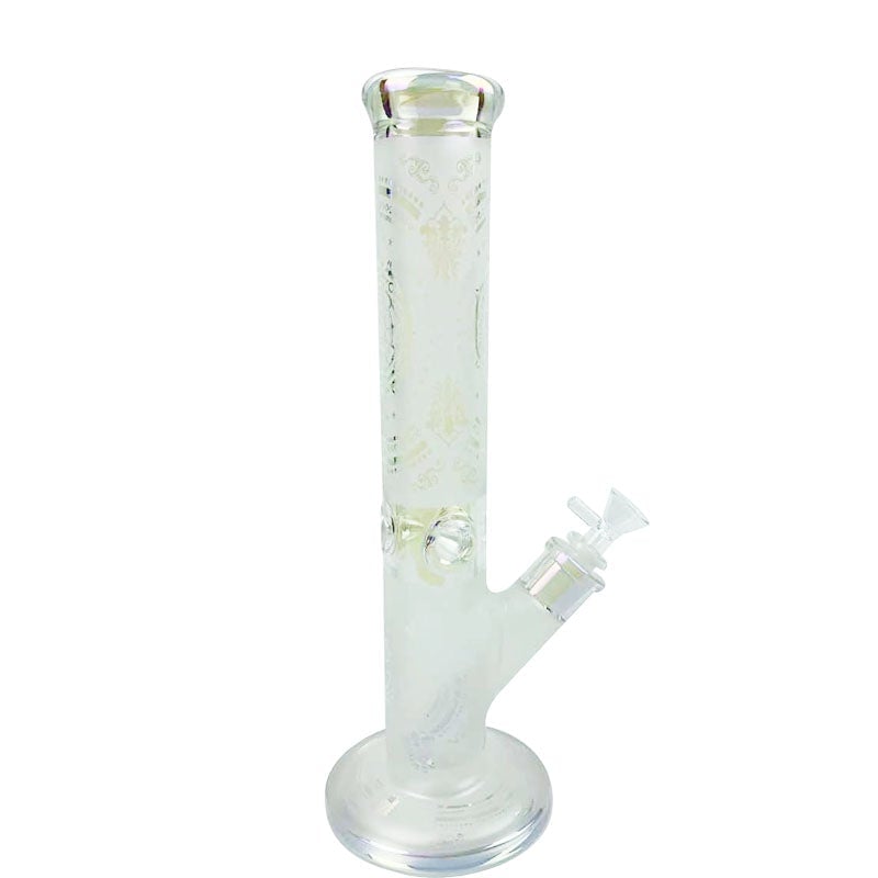This 7mm thick water bong is constructed from high-quality glass and is decorated with an exquisite print on the straight tube.