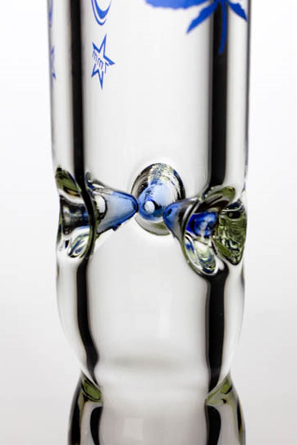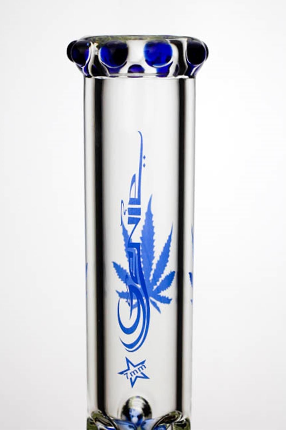 This 18 inches 7 mm thickness bong from Genie features matching color dot art designs in the mouthpiece. Decorating the nicely curved shaft are providing a comfortable grip for a better smoking experience. Genie bongs are made with the finest borosilicate glass, under the highest quality standards. Each bong is tested for minimum glass thickness before they even leave the workshop, and they are all oven-tempered to make each one a strong and tension-free bong.