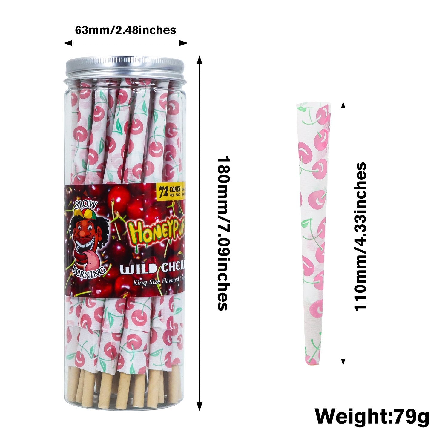 Specifications: Each cone measures 180mm (7.09 inches) in length and 63mm (2.48 inches) in diameter, weighing 79g, making it perfectly designed for various smoking habits.