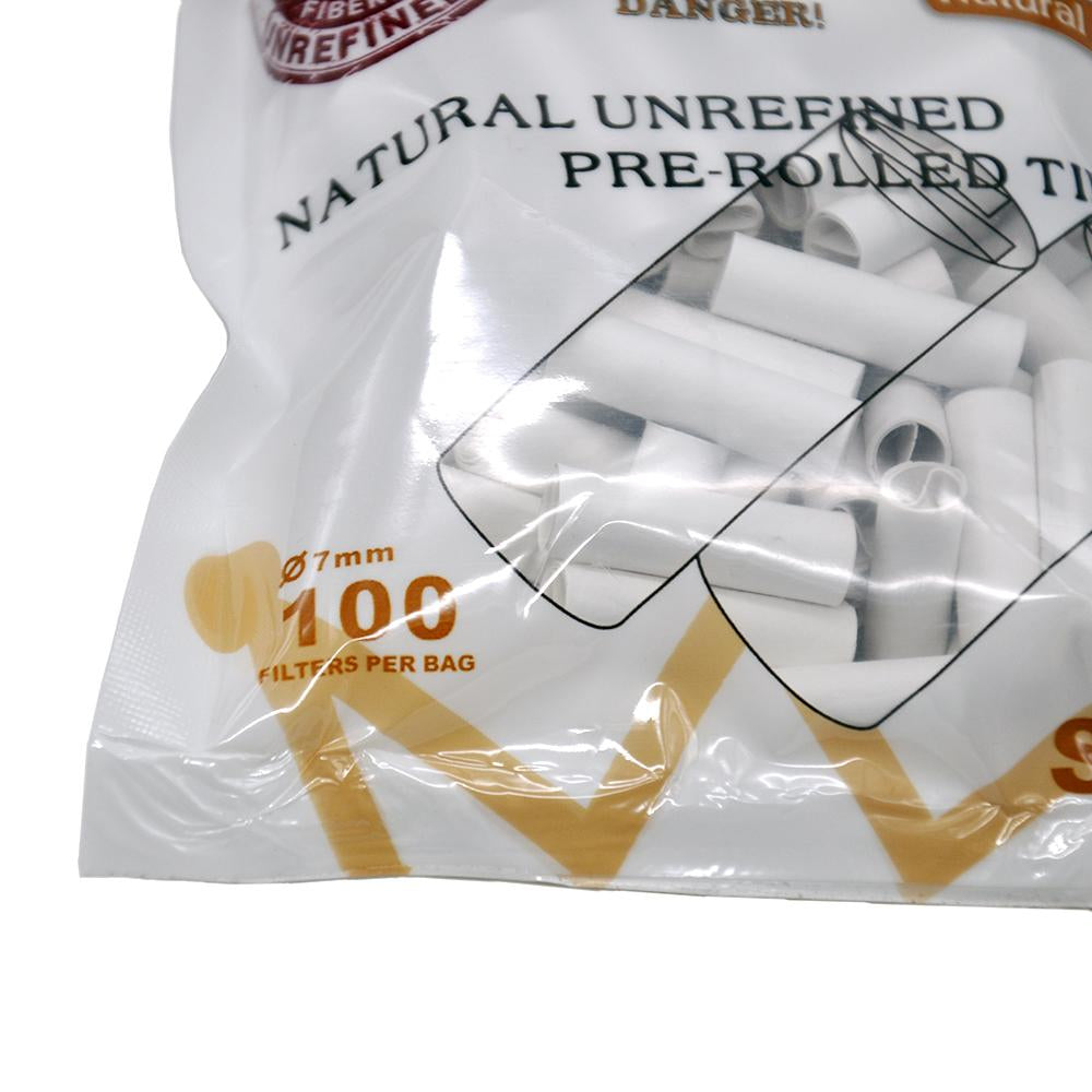 Natural Unrefined Rolling Paper Filter Tips – 7mm White Pre-Rolled Tips (100 Tips per Resealable Bag)