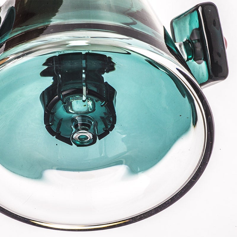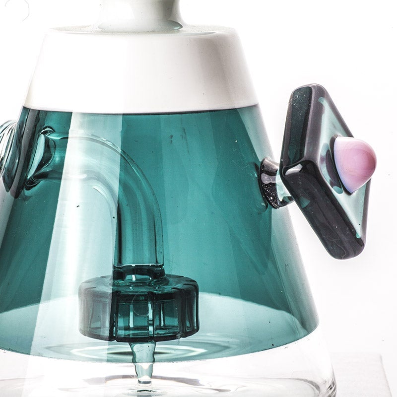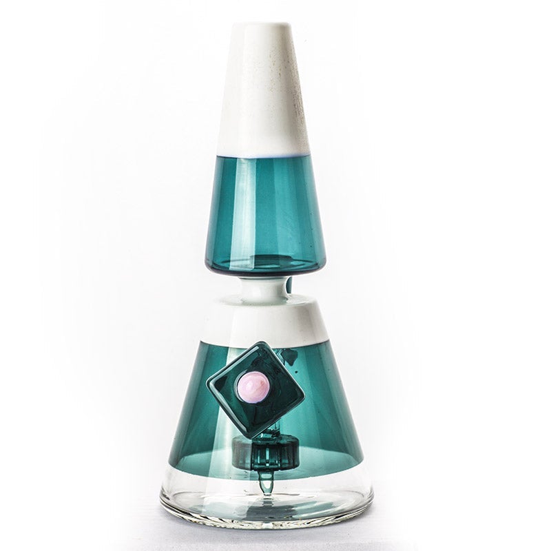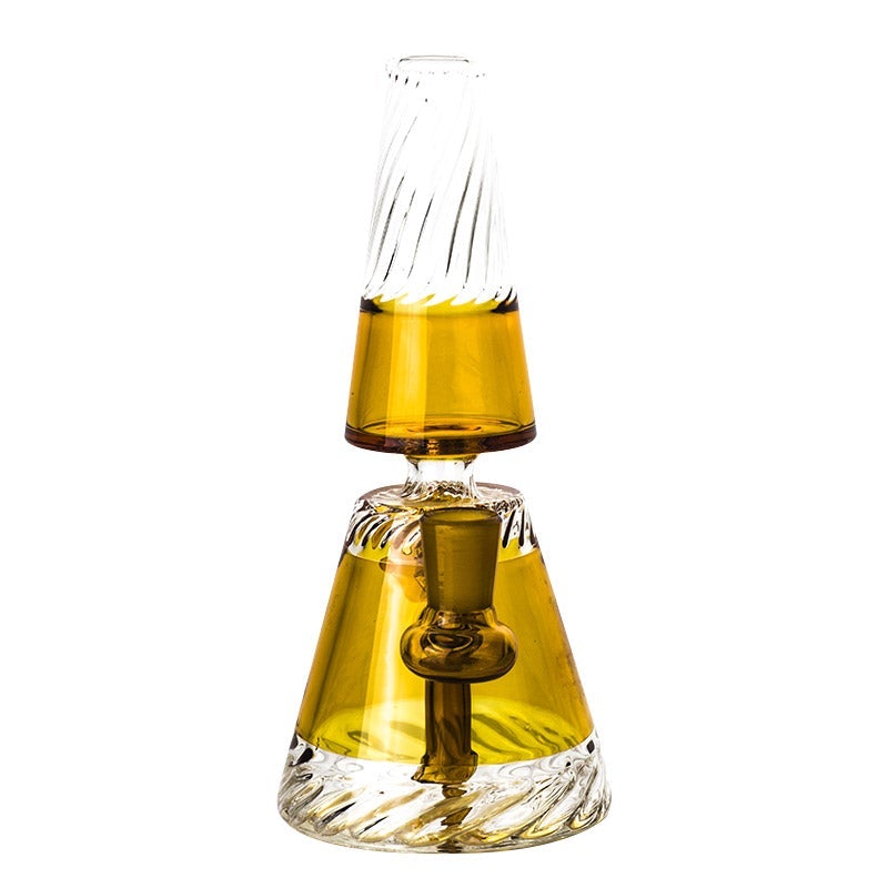 This the latest double beaker base design bong from the Puffingbird. It made of high-quality glass and features a small handle on the body. This unique shape way specializes in super-smooth smoke with no splash-back. It comes with a 14mm female joint which is suitable for mostly 14mm male bong bowls or quartz bangers on the market.