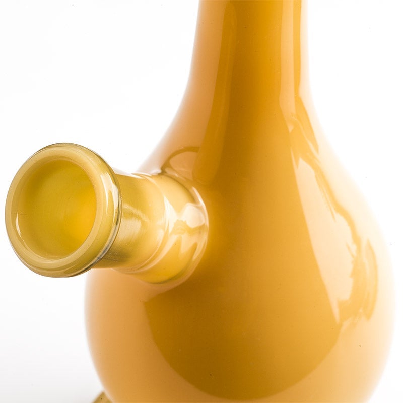 This dry herb beaker bong is made from colored high-quality borosilicate glass. The total handmade bong features with glossy glass which gives you an extremely delicate for touching. The widened bottom of this water pipe can prevent it drop down from your table. A great item is worth purchasing for your glass collection.Â